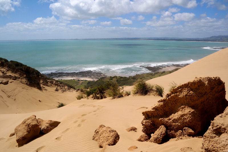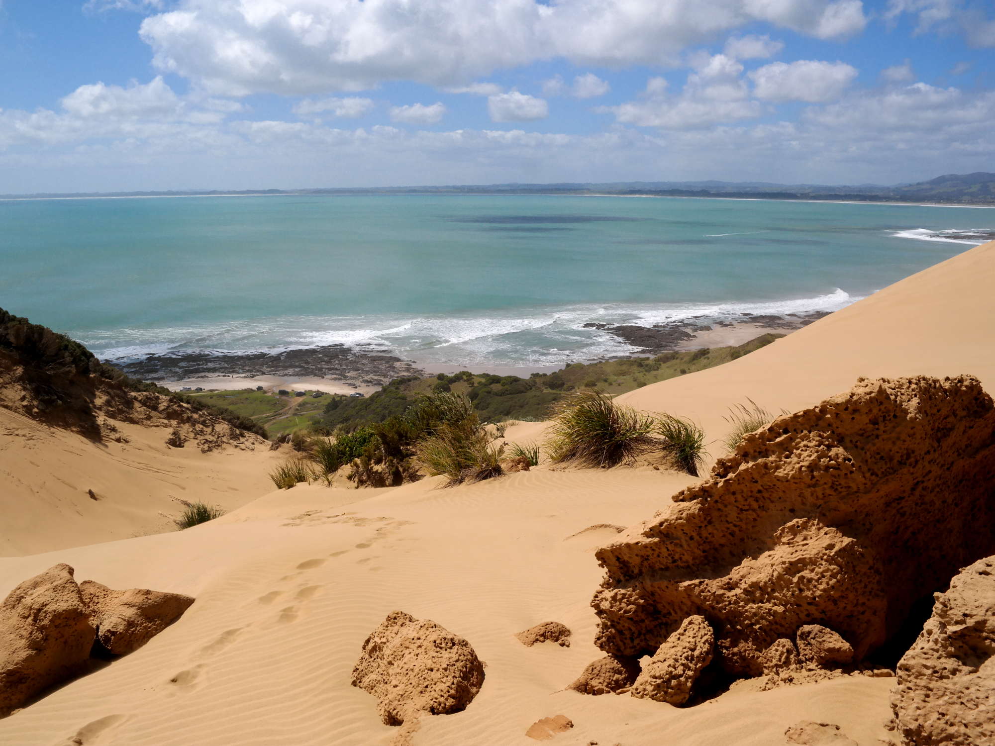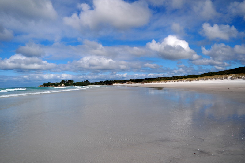 Das war also der Beginn des 90-Mile-Beach. Am nächsten Tag sind wir dann in der Mitte – es gibt nur wenige Zufahrten zum Strand, schließlich ist der ganze Strand eine Straße – an den Strand gefahren. Weit und breit nur das Meer, Sand und der Himmel. WOW!