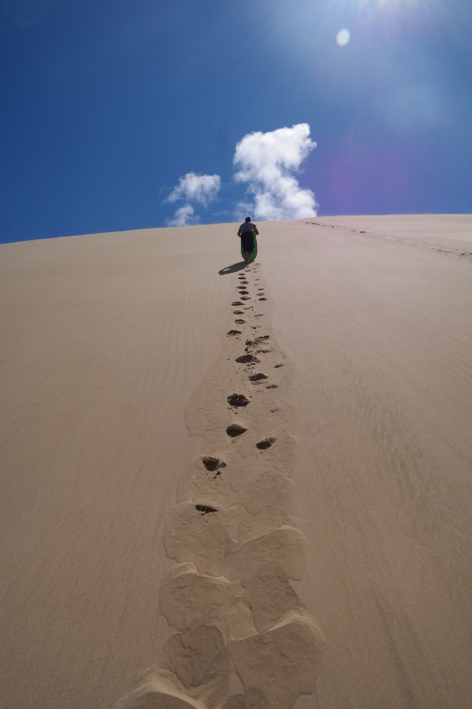Am nächsten Tag haben wir dann noch eine große Touristen-Attraktion ausprobiert: Sandboarden auf den Te Paki Dunes. 😉