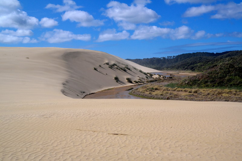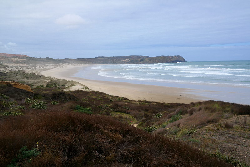 Der nächste Tag war wieder deutlich schöner und wir konnten unseren ursprünglich geplanten Ausflug nach Ahipara machen – das ist unser Luxus, wenn das Wetter doof ist, können wir einen Tag abwarten. In Ahipara beginnt der 90-Mile-Beach. Dieser Strand zieht sich ab dort fast die komplette Westküste hoch. Trotzdem ist er eigentlich „nur“ 55 miles bzw. 88 km lang.