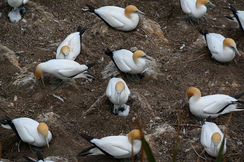 Anschließend sind wir noch etwas am Strand entlang gegangen zur eigentlich „Attraktion“ von Muriwai – einer großen Kolonie Basstölpel. Zuerst riecht man die Kolonie nur… ^
