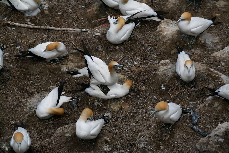 Wow! Alle nisten dicht an dicht, ein Gekreische und Geflatter, vermutlich die ganze Nacht lang. ^^ Die Basstölpel scheint es überhaupt nicht zu stören, dass dirket neben ihren Nistplätzen Aussichtsplattformen gebaut wurden von denen sie täglich tausende Male fotografiert werden. ^^ So auch von mir… Der nächste Morgen war grau, aber nach 10 Uhr trocken, also sind wir wieder hoch zu den Vögeln gelaufen.