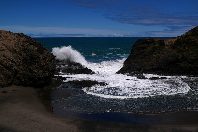 Aus den anderen Bildern kann ich jetzt ein Daumenkino basteln. ^^ Auch sehr fotogen: der Lion Rock. Er trennt die zwei Strände von Piha – man braucht etwas Fantasie um ihn zu erkennen. 😉