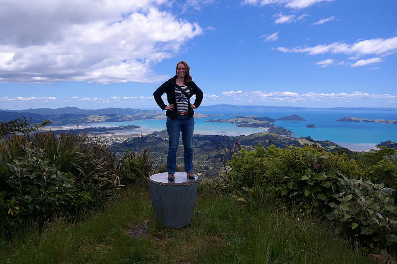 Unser erster Halt war Coromandel Town. Ein hübsches kleines Örtchen mit tollen Läden mit Gegenständen von lokalen Künstlern (irgendwie fehlt mir gerade eine Übersetzung für „craft“… – Kunsthandwerk! Danke Bastian 😉 ) und einem super sortieren Perlenladen. Ein besonderes Highlight: auf dem Markt gab es für 1,50 $ eine leckere warme Brezel!!! Unsere Erste in Neuseeland. ^^ Nach etwas hin und her sind wir weiter gefahren zu einem noch besseren Aussichtspunkt.