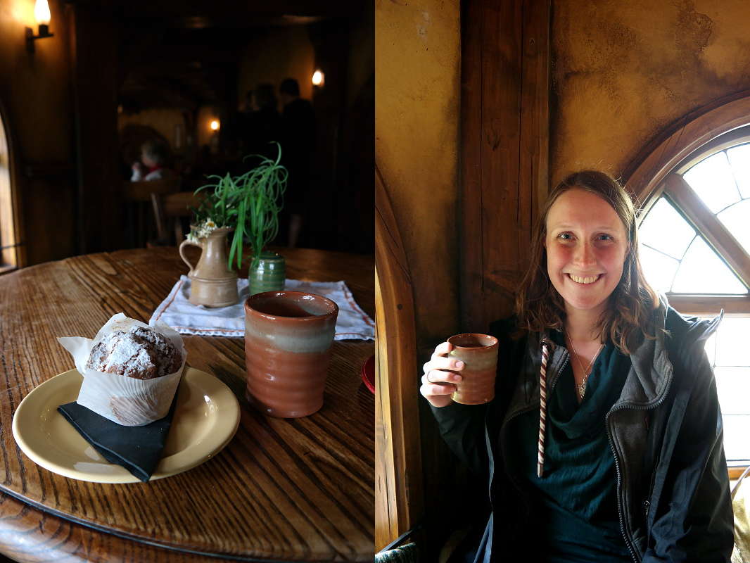 Ansonsten war das schon so eine Sache mit dem Fotos machen – meistens schnell im vorbei gehen, daher sind die meisten Bilder eher Schnappschüsse. Trotzdem habe ich super viele Bilder gemacht – an den Rekord von 3000 Bilder auf der Tour komme ich allerdings nicht dran. 😉 Zum Schluss ging es in das „Green Dragon Inn“. Die Schenke ist wirklich toll mittelalterlich gestaltet und urig gemütlich. Für jeden gab es ein Getränk – für mich Cider und für Jonas ein dunkles Bier. Wir hatten genug Zeit uns hin zu setzen, zu trinken und zu essen. Wir haben uns zur Feier des Tages noch zwei große Schokolade-Blaubeer-Muffins gegönnt – quasi mein Geburtstagskuchen. 😉