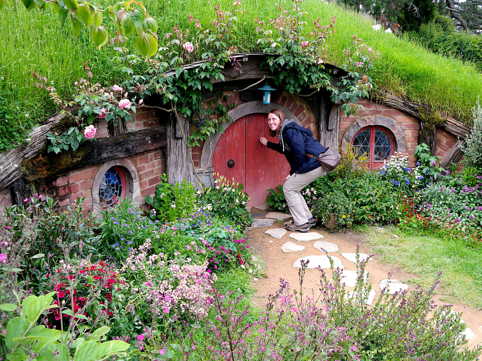 Guide Hobbiton(Der Baumstumpf oben links ist übrigens komplett künstlich – gerade fehlen die Äste, weil die Kunstblätter neu angeklebt werden müssen… ^^) Obwohl wirklich super viele Leute unterwegs waren war alles gut organisiert und jeder konnte ein Foto in einer Hobbithöhle machen. 😉
