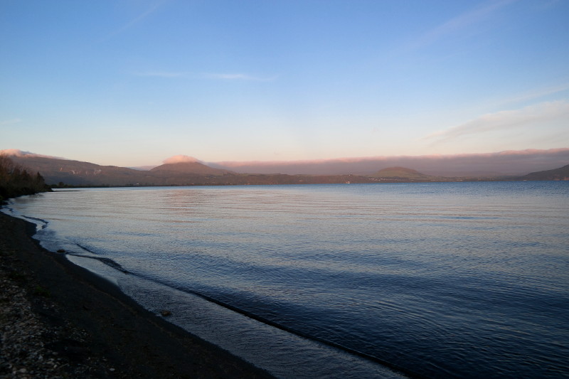 Weiter geht es am See entlang und zwischen den Bergen hindurch. Langsam öffnet sich der Blick auf die Ebene mit Lake Taupo und Lake Rotoaira.