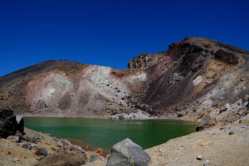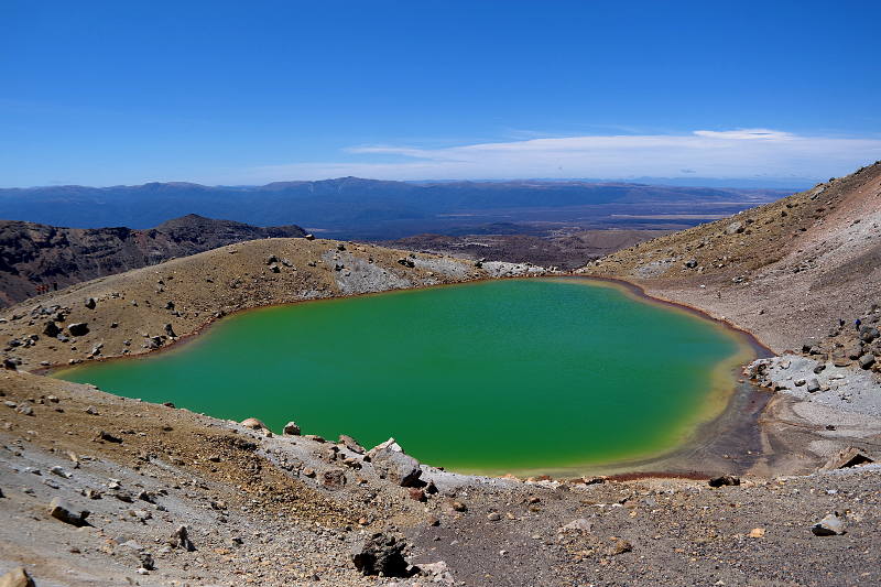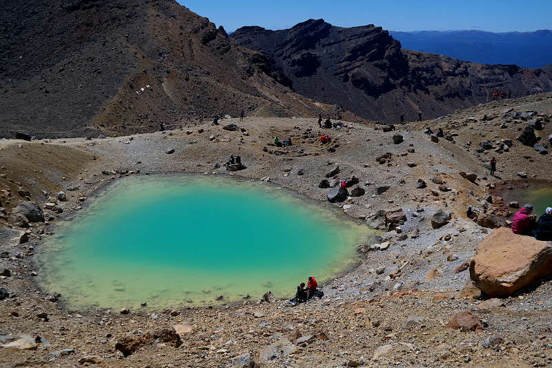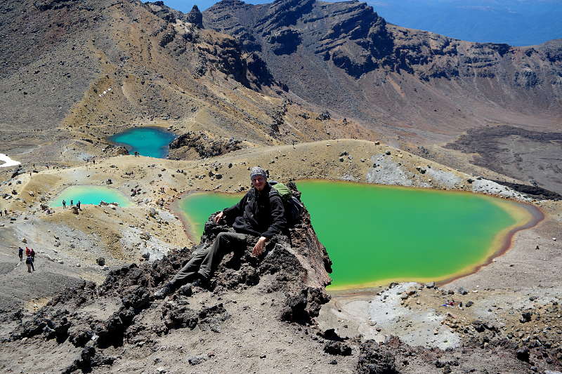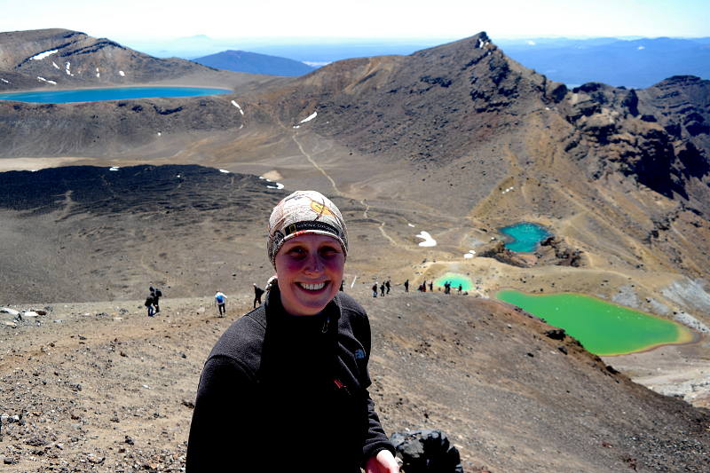 Das letzte Stück auf den höchsten Punkt der Wanderung zum „Red Crater“ war fies. Sehr steil und über Geröll. Hier hat sich das feste Schuhwerk bezahlt gemacht – ich konnte sogar ein paar Asiaten in Sneakern überholen – sonst wurde ich nur immer überholt. 😛 Oben angekommen kam dann die super Belohnung für die Anstrengung – der Blick auf die „Emerald Lakes“ und den „Blue Lake„. Damit hatte ich irgendwie gar nicht gerechnet. Jeder See hat eine andere Farbe, sie glitzern in der Sonne um die Wette und ich stehe da und kann einfach nicht aufhören zu grinsen. Einfach nur wunderschön! ❤