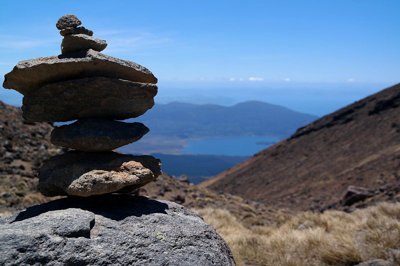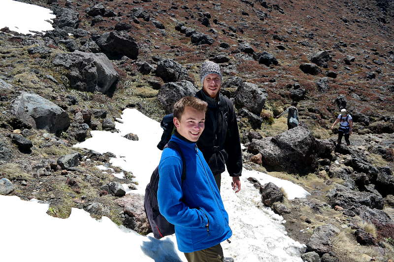 Natürlich hatten wir viel zu viel Essen dabei… armer Jonas! Nach der Pause geht’s noch mal ein bisschen hoch zum „Blue Lake“. Die Seen sind alle Kraterseen die durch Ausbrüche entstanden sind. Die Aussicht vom See zurück auf den Berg – wow!