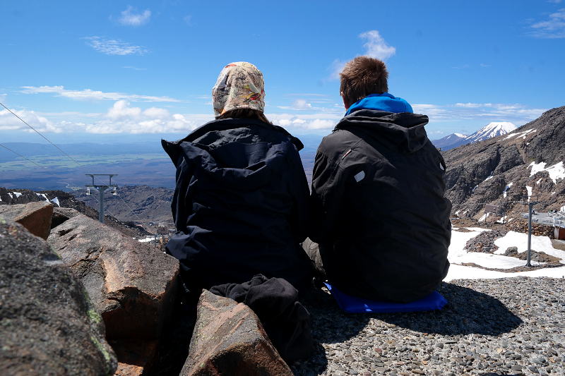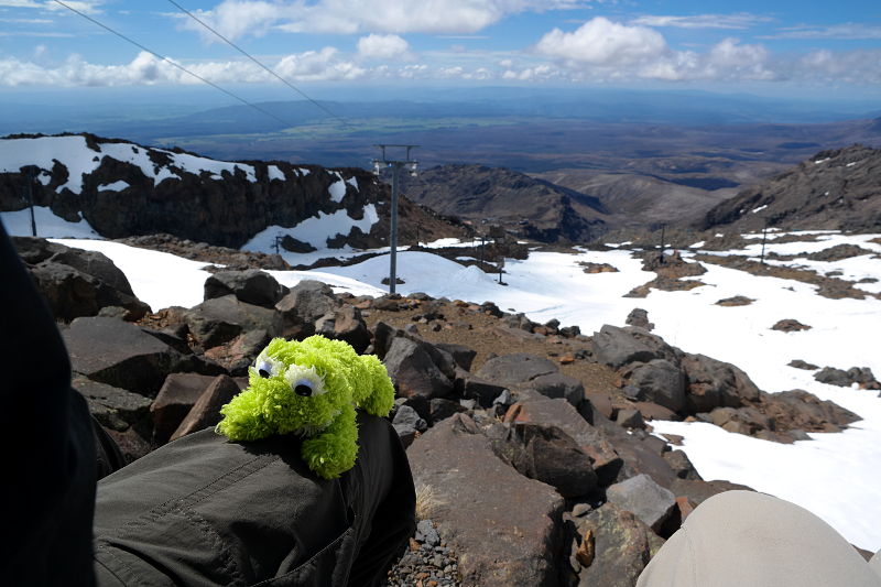 … sind wir zur „Iwikau Village“ gefahren und haben uns für 30 $ pro Person vom Sessellift auf den „Mt Ruapehu“ tragen lassen – immerhin bis auf 2020 m Höhe.