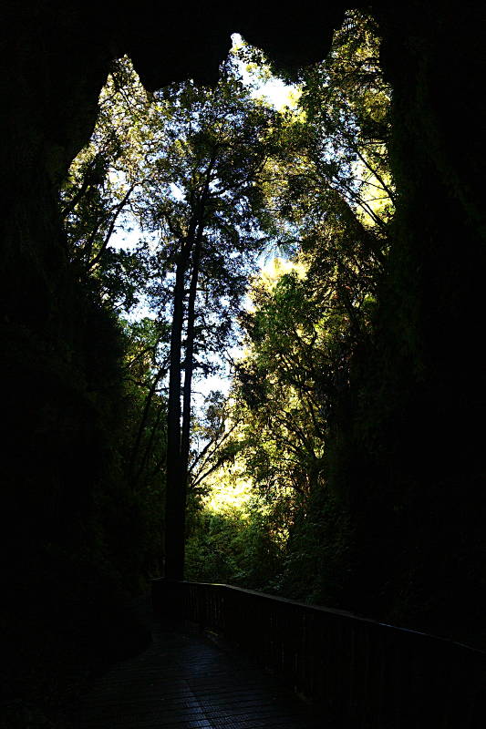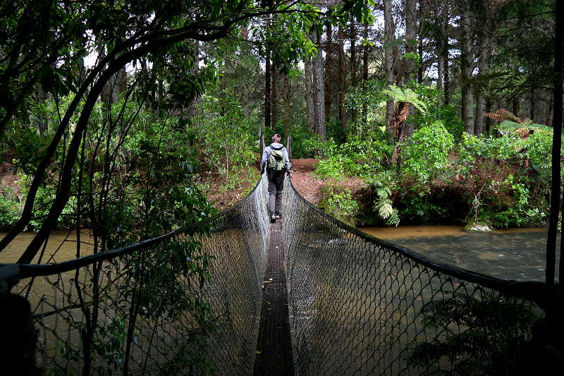 Nach ein paar durchwachsenen Bib-Tagen sind wir weiter gefahren zur nächsten Touristen-Hochburg „Waitomo„. Berühmt ist dieser Mini-Ort für seine großen Tropfstein-Höhlen. Man kann mit dem Boot durch ein Glühwürmchen-Wunderland fahren, geführte Touren durch die verschiedenen Höhlen machen oder wer mehr Action mag kann auch eine Rafting-Tour durch und um die Höhlen machen. Das alles haben wir nicht gemacht. – Wir haben inzwischen schon ein paar Höhlen und Glühwürmchen gesehen und wollen unser Geld lieber für Action auf der Süsinsel aufsparen. Was wir gemacht haben ist eine wirklich coole kostenlose kurze Wanderung ganz in der Nähe von Waitomo. Auf dem Weg haben wir eine kleine Höhle und einen großen höhlenähnlichen Bogen erkundet.