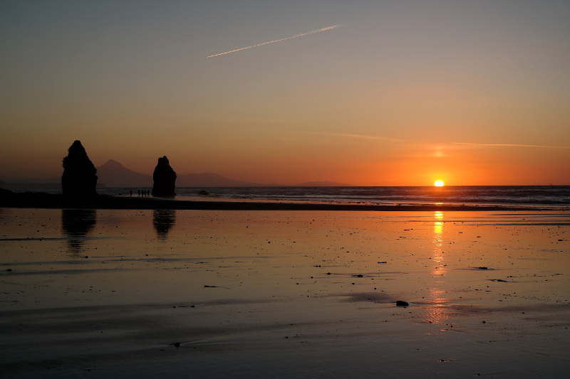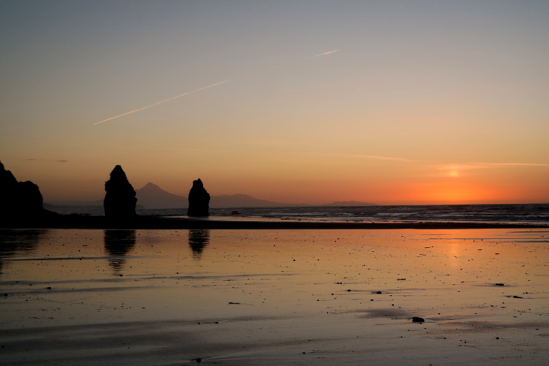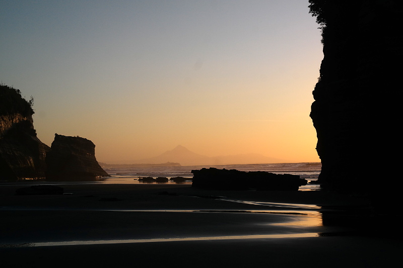 Sorry für die vielen ähnlichen Bilder – ich konnte mich einfach nicht entscheiden. Sie sind alle so wunderschön. ❤ Wie bereits im letzten Beitrag erwähnt dachte ich, dass es doof ist, dass Ebbe am Abend war, aber es war perfekt! Auf dem Rückweg zum Campingplatz konnten wir noch mal einen Blick auf Mt Taranaki werfen.