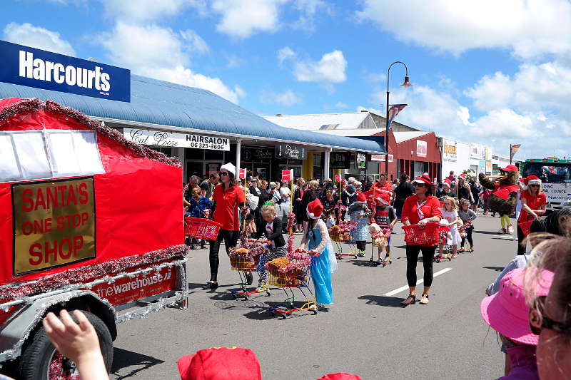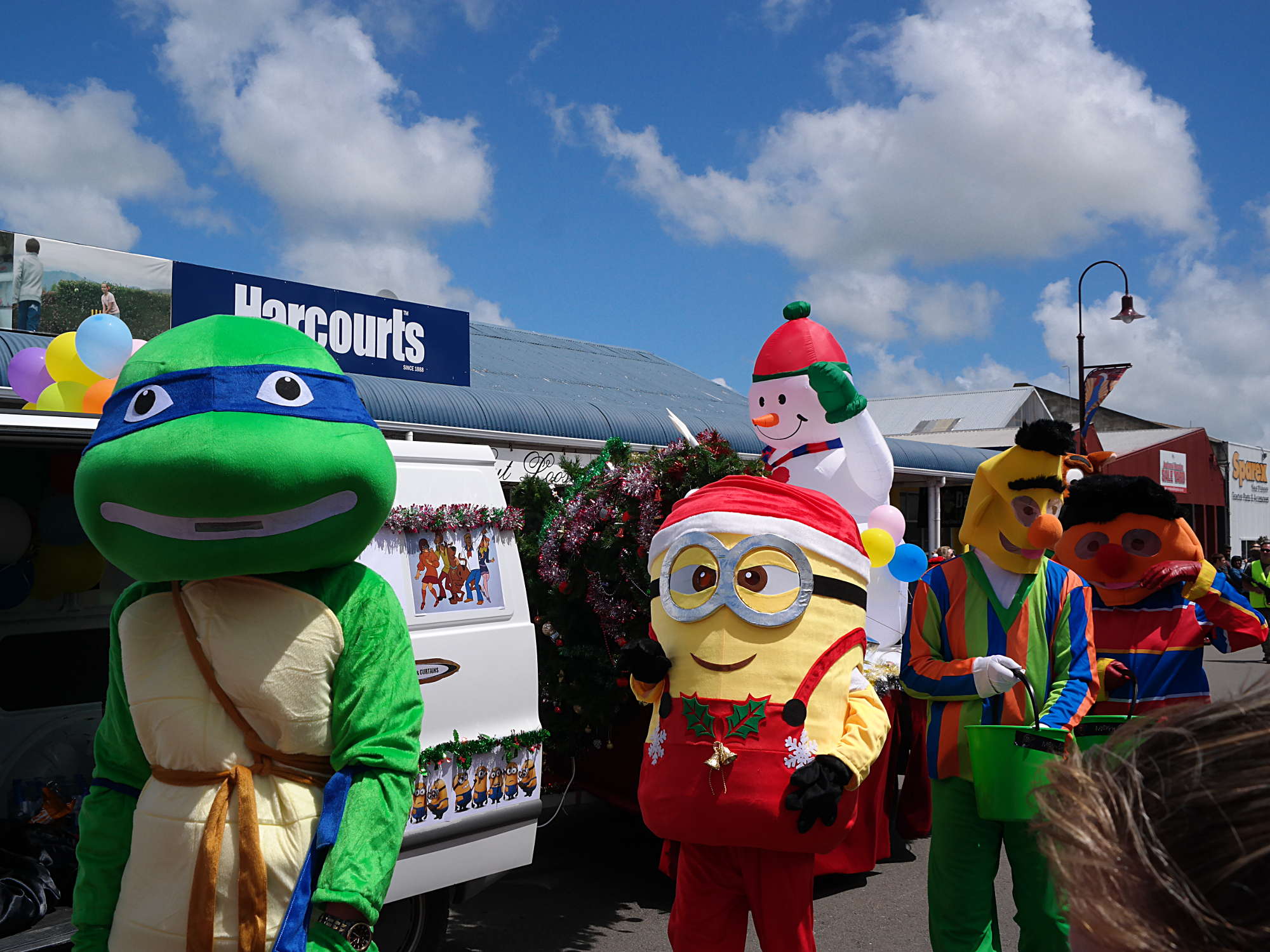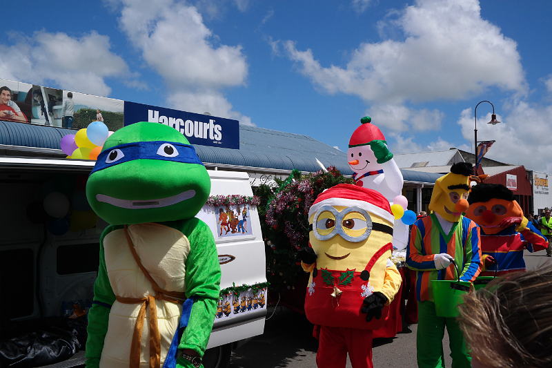In Fielding haben wir uns zuerst eine „Christmas Parade“ angeguckt um in Weihnachtsstimmung zu kommen. Das war ein Erlebnis! Nicht zu vergleichen mit einem deutschen Weihnachtsmarkt, aber witzig. ^^ Jeder Verein, jedes Unternehmen, Schulen, die Feuerwehr, die Polizei und viele andere haben bunte Wagen gestaltet und sind damit durch die Stadt gefahren. So im weitesten Sinne hatten die Deko auch was mit Weihnachten zu tun… Dazu gab es Süßigkeiten für die Kinder und der Ententanz wurde gespielt???!