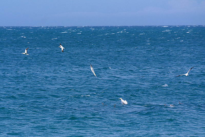 Wir haben noch eine coole Beobachtung gemacht: sehr nah an der Küste haben einige Gannets einen Fischschwarm entdeckt und gejagt. Sie sind wie Torpedos ins Wasser gestürzt und dann wieder blitzschnell aus dem Wasser geschossen. Ein cooles Spektakel!