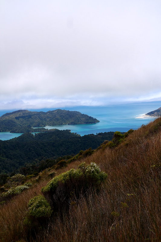 Das Wetter kann hier manchmal ganz schön gemein sein, denn es ändert sich sehr schnell. Auf dem Weg um das Whanganui Inlet herum haben wir den Knuckel Hill erklommen um eine tolle Aussicht über das Inlet zu haben. Dieser „Hügel“ war ganz schön hoch und steil …