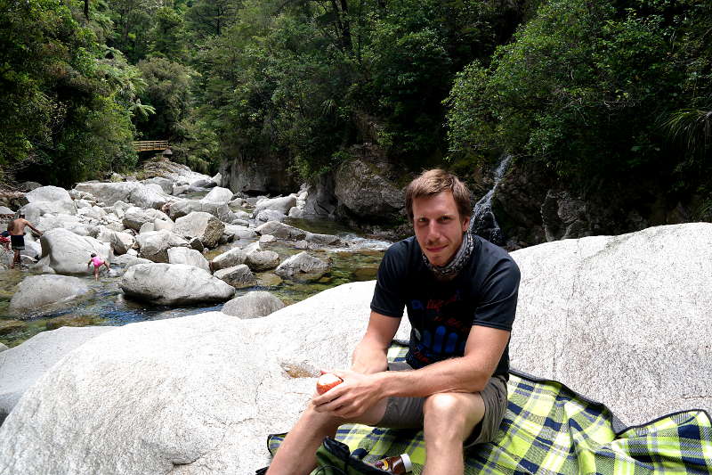 … und dort ein Picknick auf einem großen Stein mitten im Fluss gemacht. 🙂