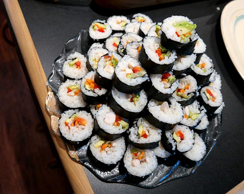 Nach dem Rodeo gab es endlich Cupcakes… und Sushi! Ah, welches Kind wünscht sich zu seinem 7. Geburtstag Sushi?! Sie ist soooo cool. ^^ (Okay, das Sushi war mit Hühnchen aber trotzdem super lecker. 😉 )