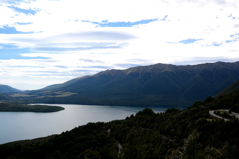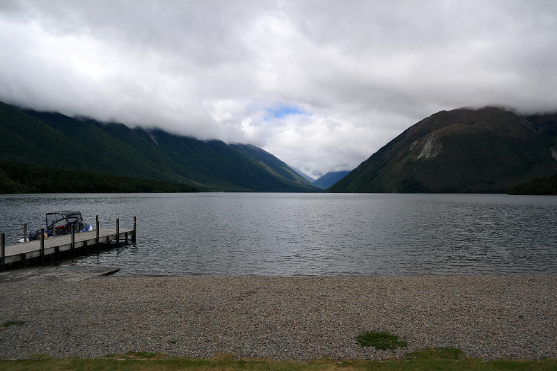 So wurden wir an den „Nelson Lakes“ empfangen. „Nelson Lakes“ ist ein weiterer National Park. Auf dem Foto oben ist der größere der beiden Seen zu sehen, „Lake Rotoiti„. Die Landschaft wurde durch Gletscher geformt. Nach einem kurzen Spaziergang am See waren die Wolken weg und wir konnten einen Blick auf die ganze Schönheit dieser besonderen Landschaft werfen: