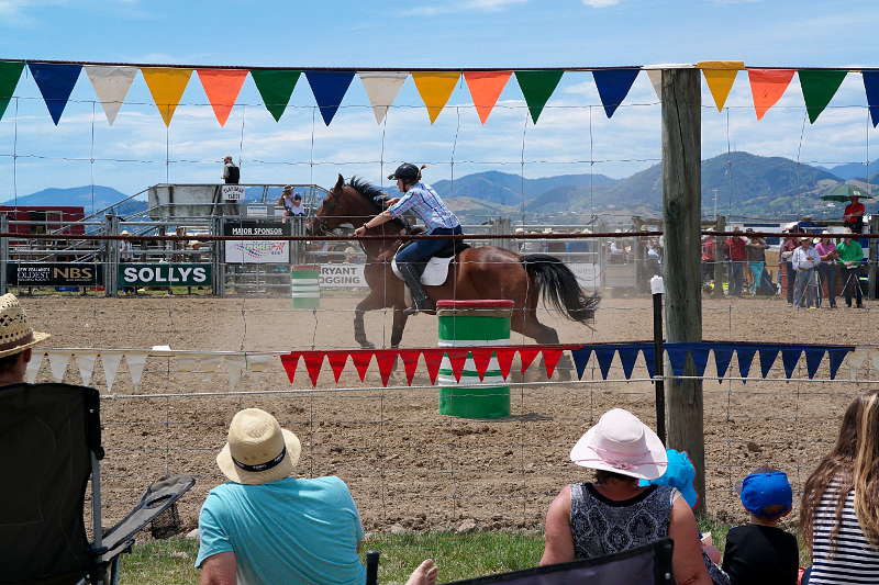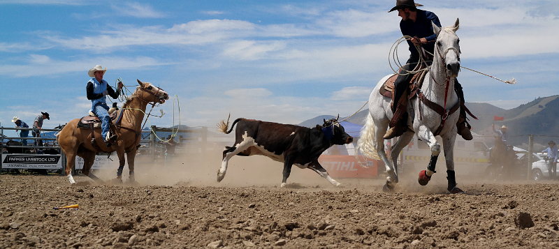 Jap, echte Cowboys. Und ja, noch immer gibt es in Neuseeland viele viele Farmer und vielleicht sind einige Techniken früher sehr nützlich gewesen… ABER die Stiere und Pferde werden mit Gewalt zum Buckeln gebracht und das ganze ist gefährlich für Mensch und Tier. Vor unseren Augen hat sich ein Stier sein Bein gebrochen – sein Schicksal steht damit fest: Kopfschuss, aber davor: Schmerzen! Natürlich ist es schwierig sich darüber zu beschweren wenn man selbst Fleisch isst – in der Massentierhaltung geht es den Tieren auch nicht besser… Aber das führt jetzt zu weit. Wir haben uns das Spektakel nicht bis zum Ende angeguckt. Die richtig großen Bullen haben wir verpasst – wir hatten dann irgendwann genug. Es war interessant zu sehen wie viele Leute „hinter den Kulissen“ mitmachen und nötig sind für die Organisation (siehe das dritte Bild). Und natürlich war es irgendwie spannend zu beobachten – am beeindruckensten fand ich die Reiter die die Teilnehmer nach dem Ritt auf dem buckelnden Stier oder Pferd versucht haben einzusammeln, vor den Tieren zu schützen und die Schlingen (die die „wilden Biester“ wild machen) zu lösen. Ihre Pferde haben ihnen zu 100% gehorcht und Mensch und Tier waren ein tolles Team.