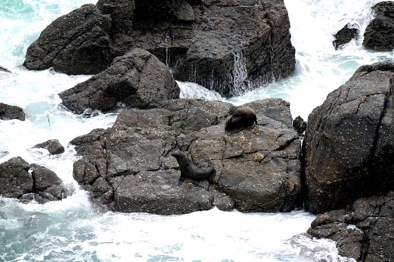 Nach einem Regentag in der Bib (der euch den Beitrag von den Nelson Lakes beschert hat ^^) haben wir uns eine erste Sehenswürdigkeit in der Region angeguckt: eine Seehund-Kolonie an Cape Foulwind. An der Beobachtungsplattform angekommen ist das erste was wir sehen aber kein Seal sondern Delfine!