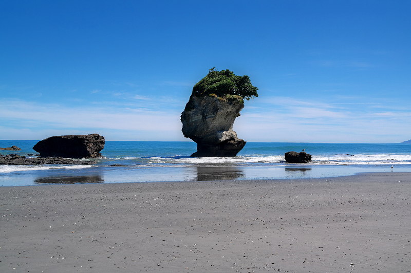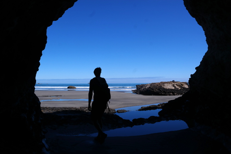 Am nächsten Tag sind wir zum Ende der Straße gefahren – eine Verbindung nach Norden Richtung Golden Bay/Abel Tasman gibt es nicht! Zumindest nicht für Autos. Der Heaphy-Track ist einer der neuseeländischen Great-Walks und führt vom nördlichen Kahurangi National Park runter an die Westcoast nach Karamea. Der Track führt durch Wälder, ins Gebirge, in den Regenwald und an die Küste. Die Wälder und das alpine Gebirge haben wir bereits gesehen, daher wollten wir den Regenwald und Strandteil etwas erkunden. Wir haben einen kurzen Walk in den Heaphy-Track rein, zum ersten Strand und wieder zurück gemacht. Eine klasse Kurzwanderung!
