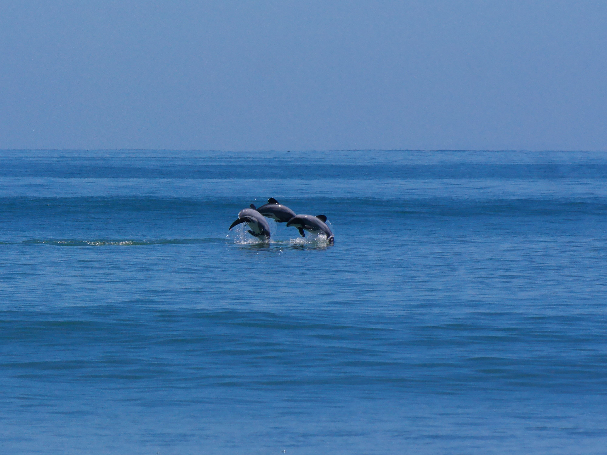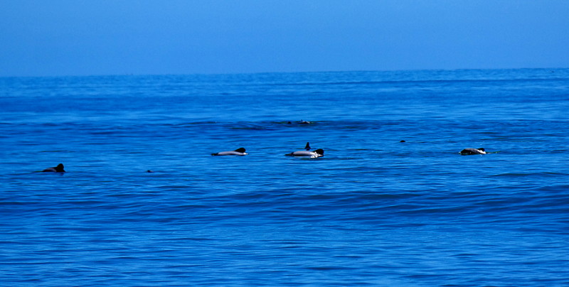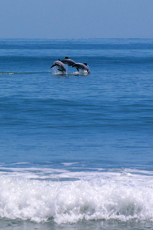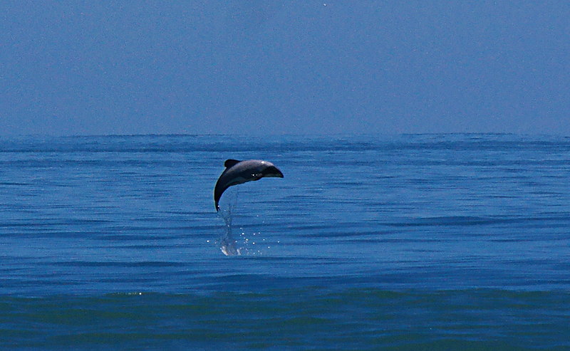 Beim zweiten Blick erkennt Jonas warum die Kajaks im Meer sind: in der Bucht schwimmen zahlreiche Delfine! Hector-Delfine! Yes! Wir halten in der nächsten Haltebucht an und springen aus dem Auto. Ich bin super begeistert! ❤ Es sind sooo viele und sie sind so nah. Jonas beschließt spontan: Ich geh rein! Er geht zurück zum Auto um sich umzuziehen und ich beobachte die Delfine.