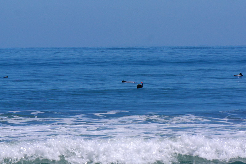 Da das Meer wirklich flach ist, ist es kein Problem für Jonas etwas raus zu schwimmen und den Delfinen noch näher zu sein. Gratis Schwimmen mit Delfinen!
