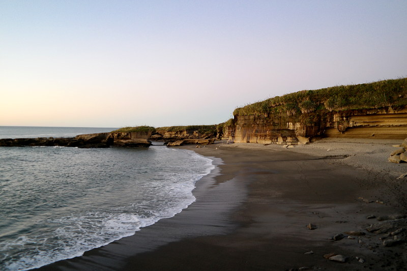 Da Karamea eine „Sackgasse“ ist ging es nach einer weiteren Nacht auf dem Campingplatz (- auf dem auch Jonas Schuhe auf uns gewartet haben die ich unter dem Auto vergessen hatte 😮 ) zurück nach Westport. Auf einem 5-Dollar Campingplatz (der Hinterhof einer Taverne mit Plumsklo) haben wir dann zufällig Carol und Pierre unsere liebsten Franzosen getroffen. Wir haben ein Bierchen getrunken, uns super unterhalten und Fotos ihres ungeborenen Babies angeguckt. ❤ Am nächsten Morgen haben wir für die beiden/drei Pancakes gebacken. (In Karamea haben wir uns für 5 Dollar riiiiiiesige Enteneier gekauft. ^^) Die Pancakes gab es natürlich weil an diesem Tag die berühmten Pancake-Rocks auf dem Programm standen. 😉 Die sind aber nur richtig spannend bei „High-tide“ wenn das Wasser durch die Blowholes spritzt. ^^ Da High-Tide um halb fünf war hatten wir also noch etwas Zeit… Carol und Pierre sind zu Cape Foulwind gefahren um auch Delfine zu sehen und Jonas und ich sind dort hin gefahren für einen wunderschönen Strandspaziergang.