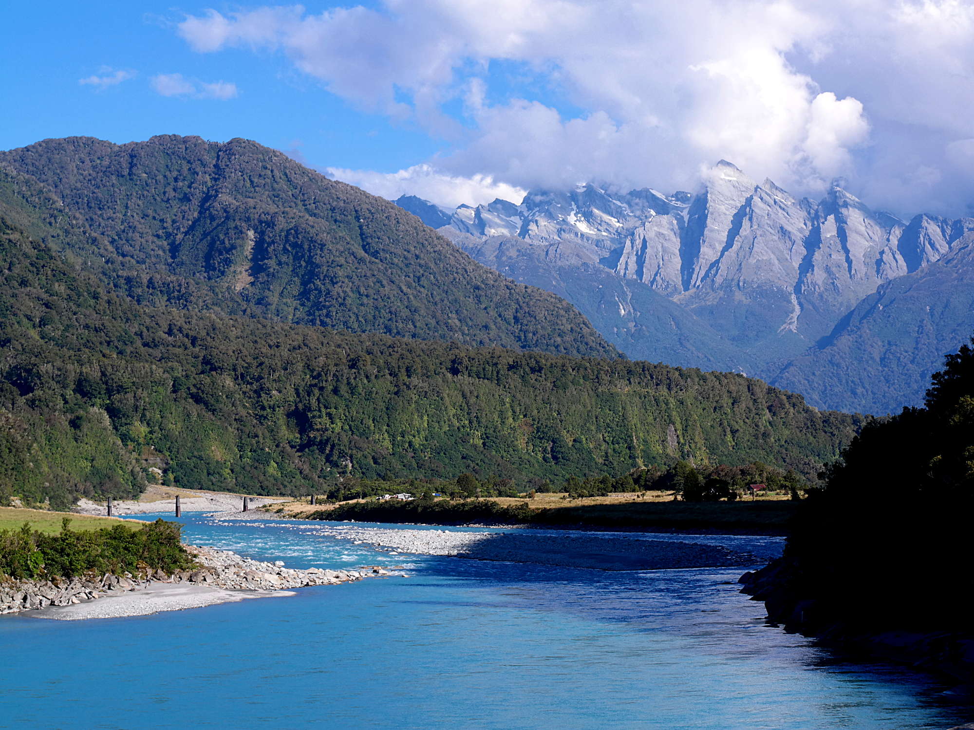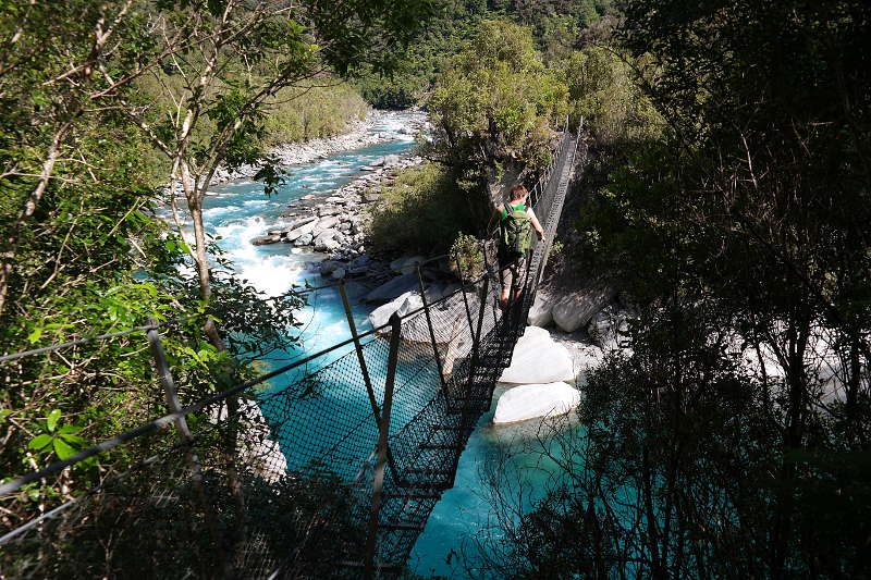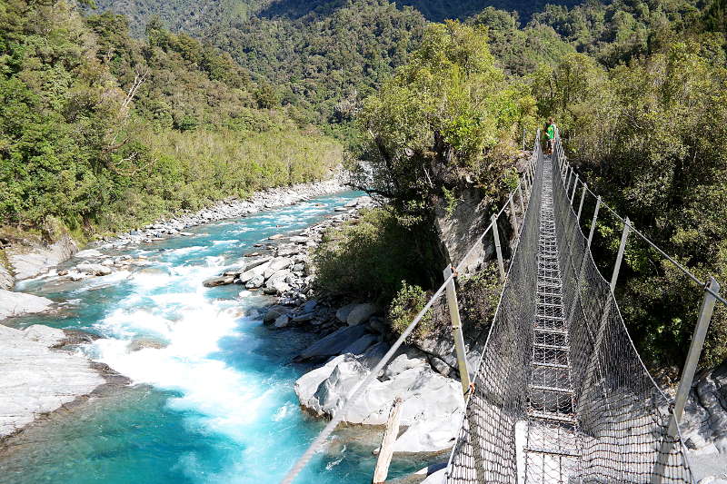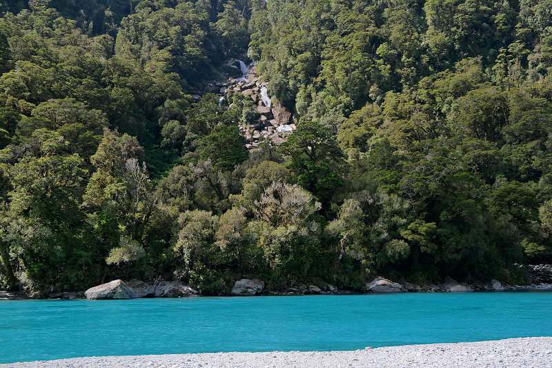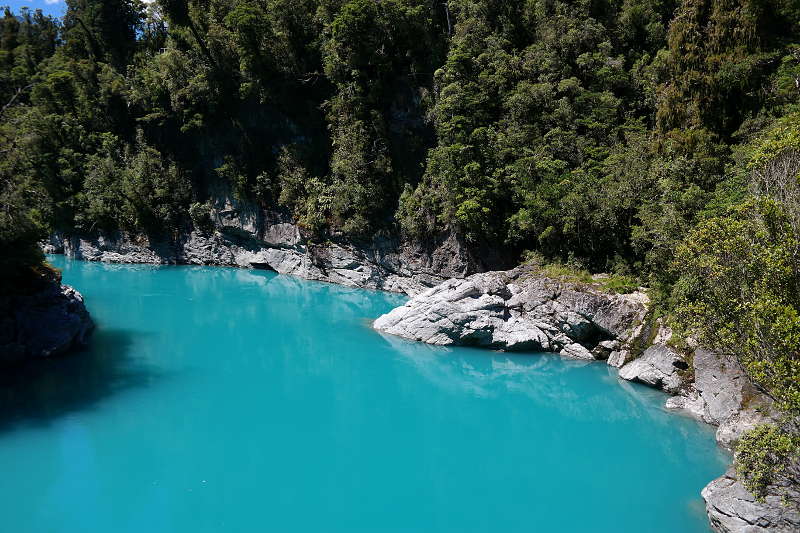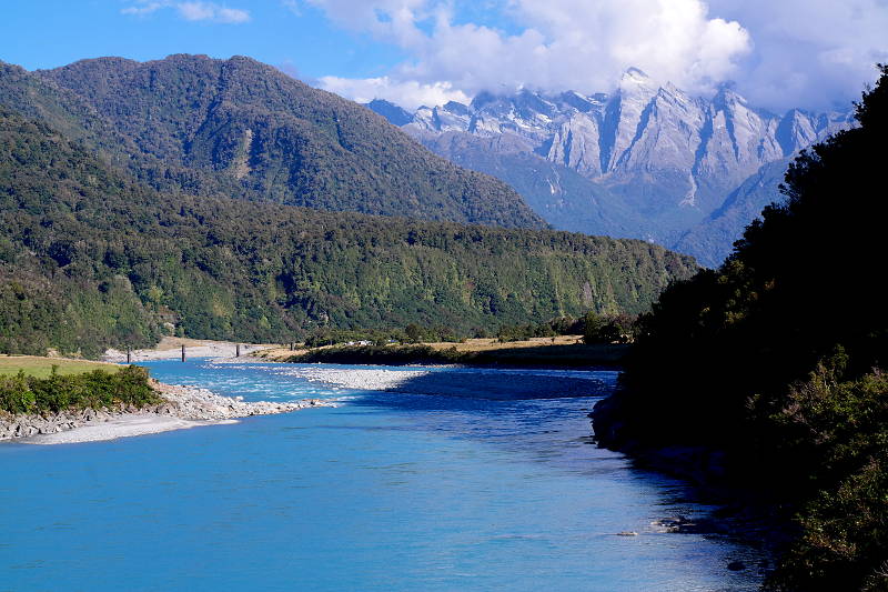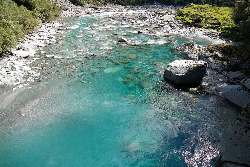 Trotz dieser Horros-Nacht haben wir noch zwei weitere Tage in Hokitika verbracht – wir haben auf besseres Wetter gewartet. Das Warten hat sich am Ende gelohnt – dieser „Ausflug“ war meine bisher schönste Erfahrung in Neuseeland und davon gibt es sooooo viele Bilder, deshalb gibt es einen eigenen Beitrag. 😉 Danach sind wir weiter gefahren in Richtung der „farbgebenden“ Gletscher. Auf dem Weg… noch mal so ein Fluss! Ist es echt?!