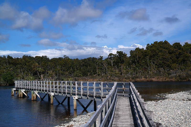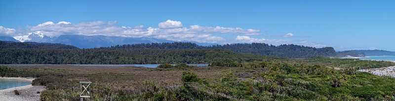 Im Hintergrund sieht man schon etwas die Südalpen. ❤ Wir haben auf einem sehr vollen und relativ teuren Campingplatz in Okarito übernachtet und dort am nächsten Tag eine schöne Wanderung gemacht. Zuerst ging es auf einen Aussichtspunkt. Von dort gibt es einfach so viel zu sehen! Das Meer und die Lagunen (mit vielen Vögeln, eventuell sogar „White Herons“?!) sowie die Berge und Gletscher. Wow!
