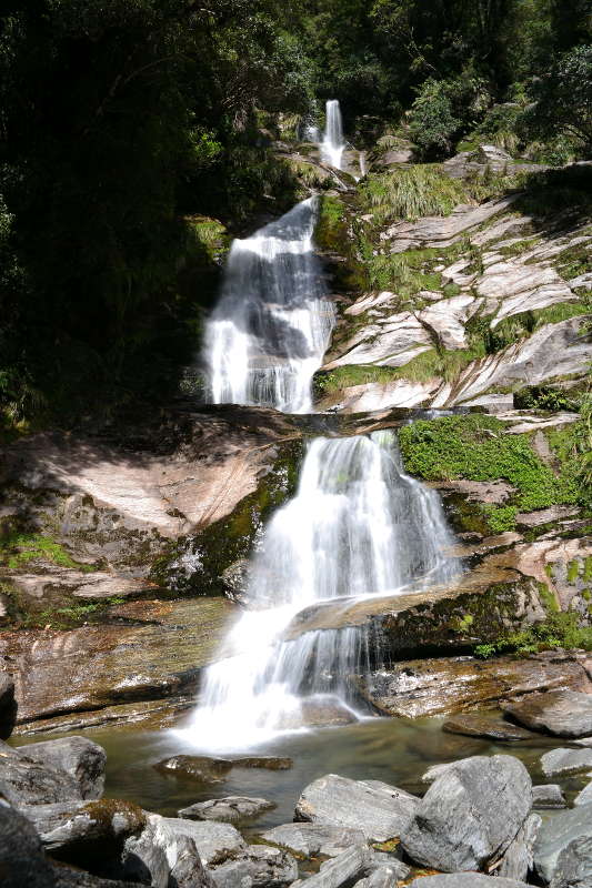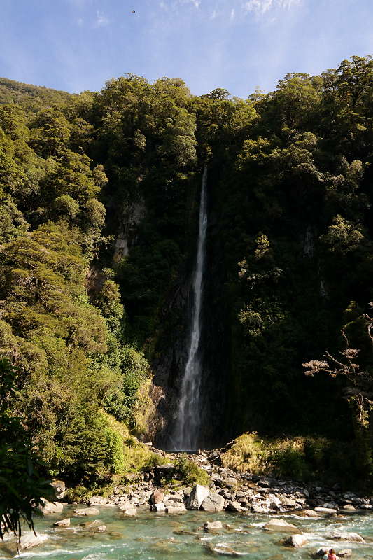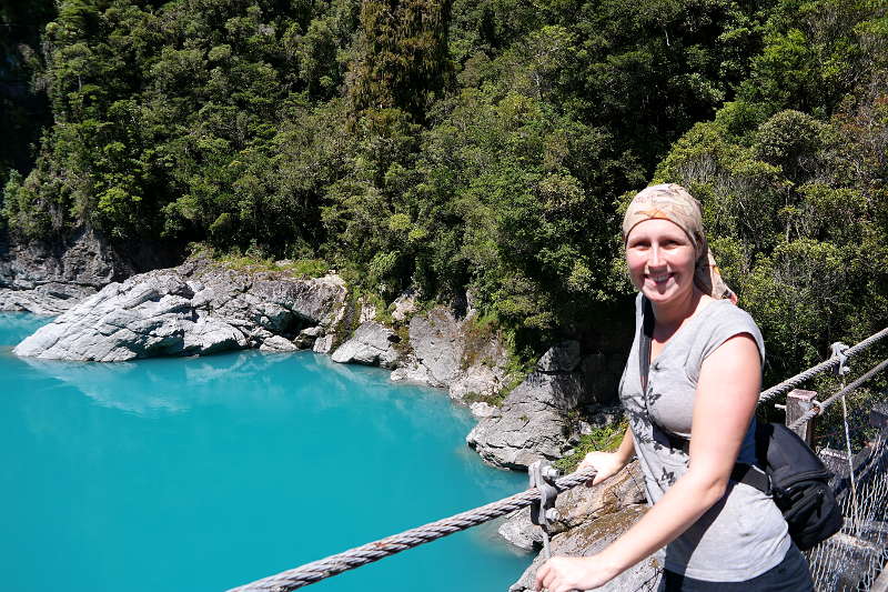 Nach einem stärkenden Frühstück ging es weiter an der Westküste entlang runter Richtung Wanaka. Die Fahrt weg von der Westküste in das Landesinnere über den Haast-Pass hat mich super positiv überrascht. Wir hatten nicht wirklich etwas geplant, aber zufällig habe ich kurz vorher eine DOC-Broschüre „Walks along the Haast-Pass“ in unserem Handschuhfach gefunden – sie lag da noch vom Vorbesitzer des Bongos und ich dachte eigentlich sie wäre über den Aspiring National Park… perfektes Timing! Sobald wir die Küste verlassen hatten schien auch wieder die Sonne und wir konnten zahlreiche kurze Spaziergänge zu Wasserfällen, kristall-klaren Flüssen und den „Blue-Pools“ genießen. Zwischendurch gab es immer wieder klasse Aussichten auf die Berge. Ich liebe diese kleinen unerwarteten Schönheiten – meistens beeindrucken sie mich mehr als die Touristen-Attraktionen zu denen jeder hin fahren „muss“. 🙂