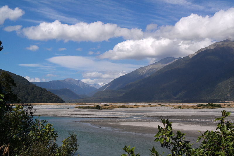 Auf einem Campingplatz in der Nähe von Farewell Spit haben wir eine Familie getroffen, die gerade auf dem Rückweg war von ihrer Reise an der Westküste entlang. Als wir gesagt haben, dass wir runter fahren haben sie gesagt: „Wir würden sofort wieder hin fahren. Es ist so wunderschön! Jeder Fluss hat eine andere Farbe und die Berge!“ Das mit den Farben konnten wir uns nicht so ganz vorstellen… bis wir es gesehen haben! Es ist wirklich unglaublich welche Farben ein Fluss haben kann. 🙂