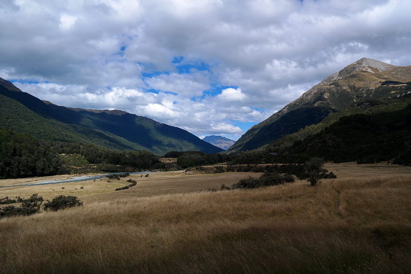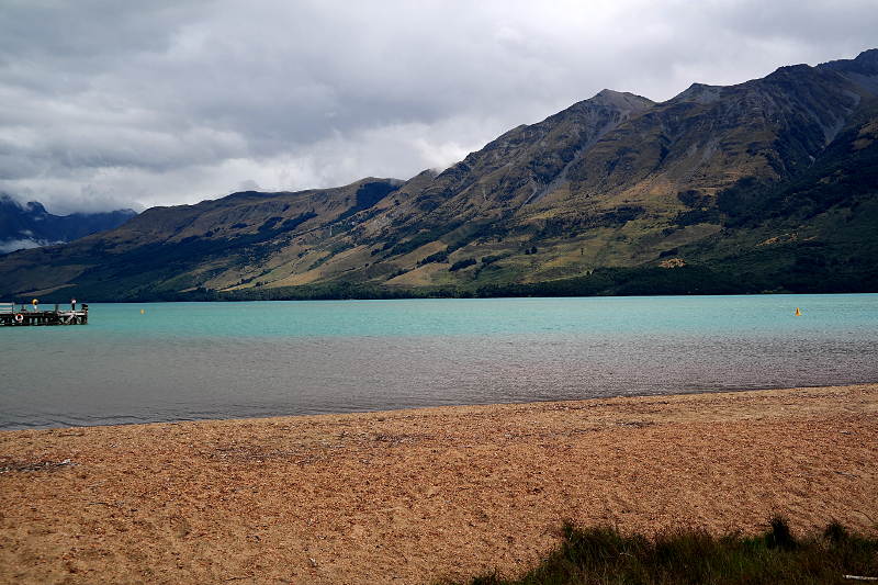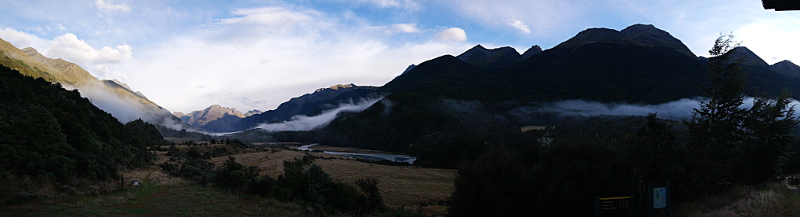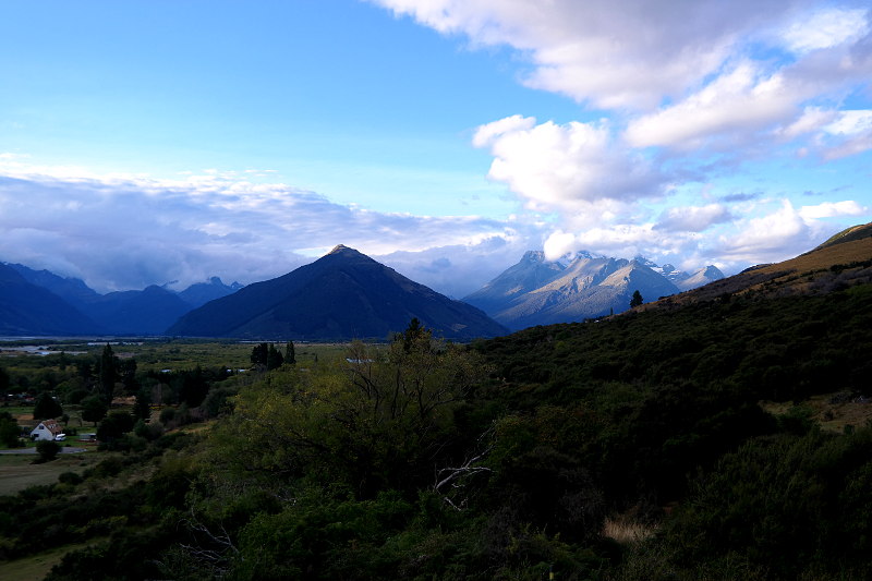 Also Glenorchy… es liegt hinter Q-Town am anderen Ende des Sees. In Q-Town haben wir hin und her überlegt über wir nach Glenorchy fahren sollen oder nicht. Die Wettervorhersage für die nächste Woche war ganz grausig und wir wollten eigentlich eine mehrtägige Wanderung machen, den Greenstone-Track. Nach eeeewigem hin- und her entscheiden wir uns also dazu die Vorhersage zu ignorieren, kaufen uns einen Backcountry-Hutpass (für 92 Dollar kostenlos in fast jeder Hut übernachten), gehen einkaufen und fahren nach Glenorchy.