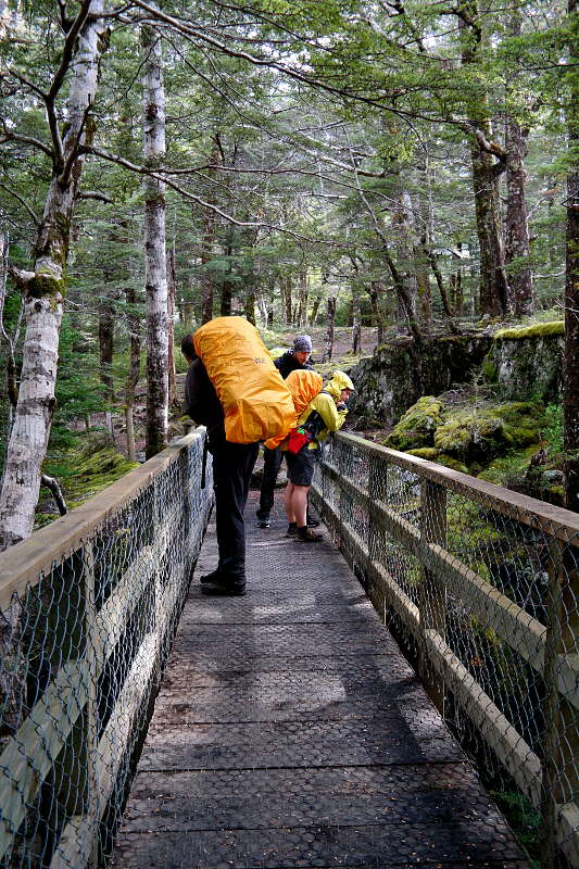 Und ich fürchte es war wieder ich die gesagt hat: „Ach, wir gehen trotzdem los!“ Also gehen wir los… durch den Regen, den ersten kleinen Hügel hoch. Puh ist das anstrengend und die Rucksäcke sind auch ganz schön schwer (auch wenn ich nur einen Mini-Rucksack hatte…)! Wir laufen am Fluss entlang durch das Tal… und es regnet und regnet. Ja, das ist wohl der Beginn von Fjordland. ^^