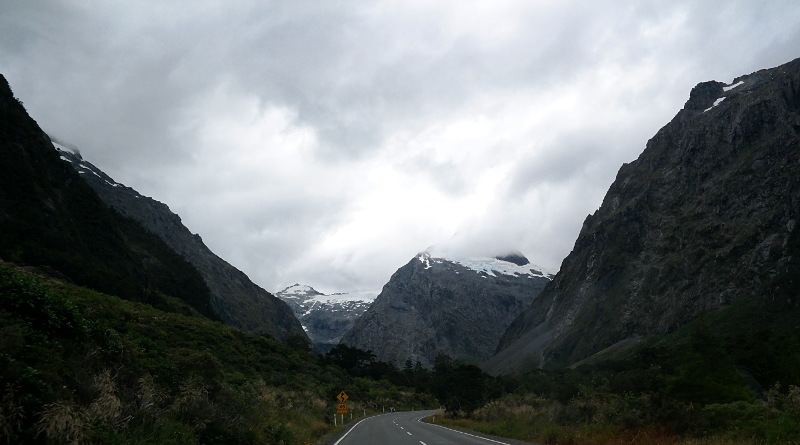 Anschließend ging es weiter auf der schmalen Straße und die Berge wurden noch höher und die Felswände steiler. Hier und da lag sogar etwas Schnee und wir erblickten Gletscher. Beim Gletscher muss man meistens anhalten – um zum Sound zu gelangen muss man durch den „Homer Tunnel“ fahren und der ist einspurig! 😮