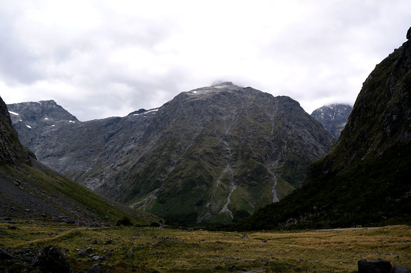Habt ihr euch schon mal in einem italienischen Tunnel gefürchtet?! Diese Tunnel sind wundervoll sicher und ausgebaut gegen das dunkle tropfende Loch Homer Tunnel. Ernsthaft jetzt, als es später auf dem Rückweg geregnet hat, haben merkwürdige Metallplatten das Wasser daran gehindert auf die Straße zu fließen, es gibt kaum Licht, nicht wirklich Notausgänge, die Straße ist steil und holprig… Ein Abenteuer! Aber wir haben es heil überstanden 😉 Und dann wird man bald mit dem Ausblick auf „Mitre Peak“ belohnt: