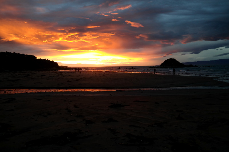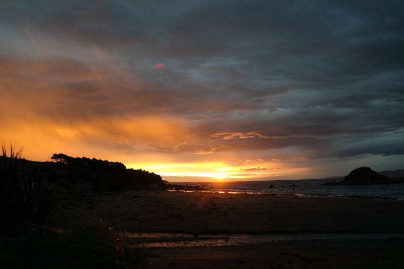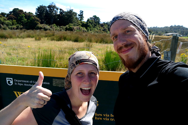 In dieser Nacht waren drei andere Tramper in der Hütte, aus Frankreich, Canada und Israel. Eine coole Mischung! Und wir haben uns gut unterhalten. 🙂 Von Ron aus Israel erfahren wir allerdings: „Matsch?! Ach, ihr ward noch nicht auf Stewart Island. Da ist das viel schlimmer! Da musste ich mir meine Badehose anziehen und durch den Matsch schwimmen.“ Ja, richtig… das Stewart Island auf dem wir in vier Tagen wieder eine mehrtägige Wanderung machen. Yeah… ^^ Da haben wir uns ja richtig eingestimmt… ^^ Nach einer kurzen Nacht geht es dann los auf die letzte Etappe, wieder 20 km und wieder bei strahlendem Sonnenschein! Schon lustig, das beide Etappen auch wettertechnisch fast gleich waren. ^^ Dieses Mal haben wir am Strand sogar zwei Hector-Delfine entdeckt! ❤