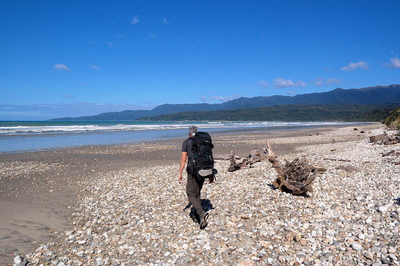 So, wo war ich eigentlich stehen geblieben?! Ach, bei unserer mehrtägigen Wanderung auf dem „Hump Ridge Track“. Am nächsten Tag ging es mit voll gepackten Rucksäcken los. Für mich war es das erste Mal mit meinem großen Rucksack. Aufregend! Wir hatten schönstes Wetter und sind super gelaunt gestartet. Nach einer schönen flachen Passage durch den Wald ging es direkt an den Strand. Ein Traum! Der Weg war wirklich sehr abwechslungsreich und super schön. 🙂