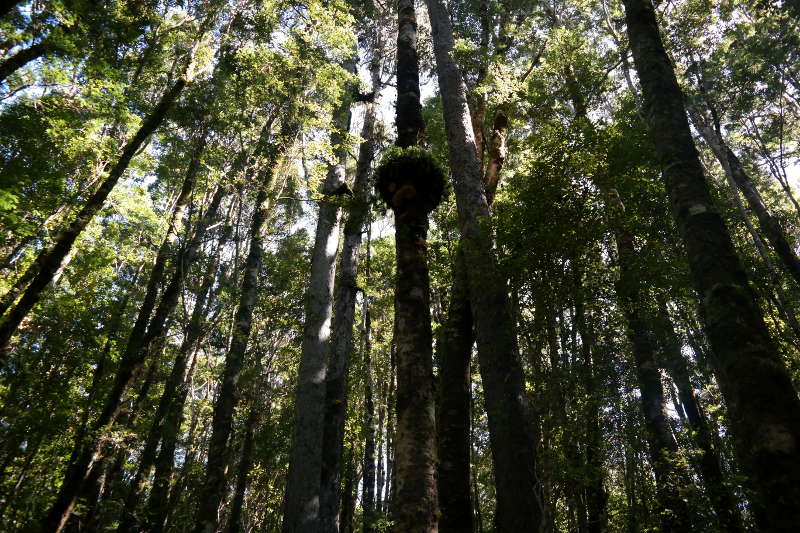 Die Nacht war sehr stürmisch, aber halbwegs erholsam. Am nächsten Morgen war der Himmel bedeckt und wir sind auf die zweite Etappe gestartet zur zweiten Hut. Dieses Mal ging es direkt über die alten Schienen die früher die Baumstämme zum Sägewerk transportiert haben.