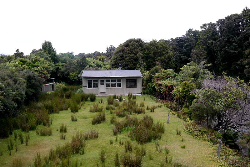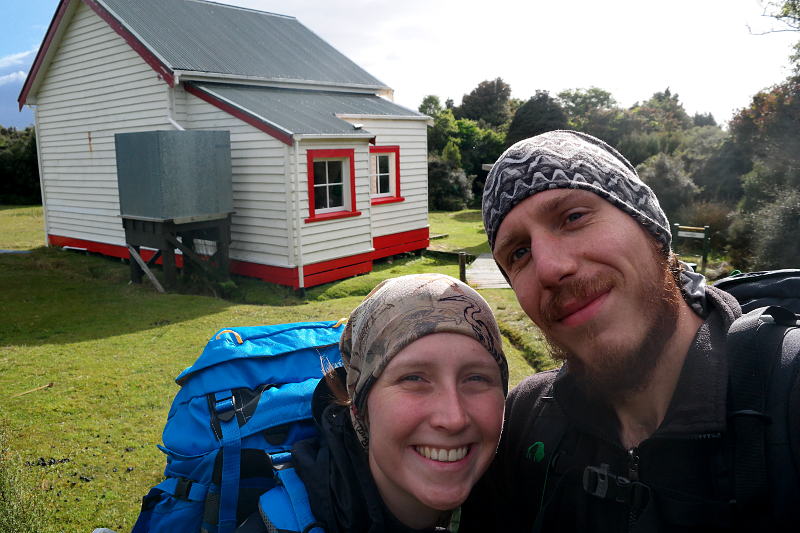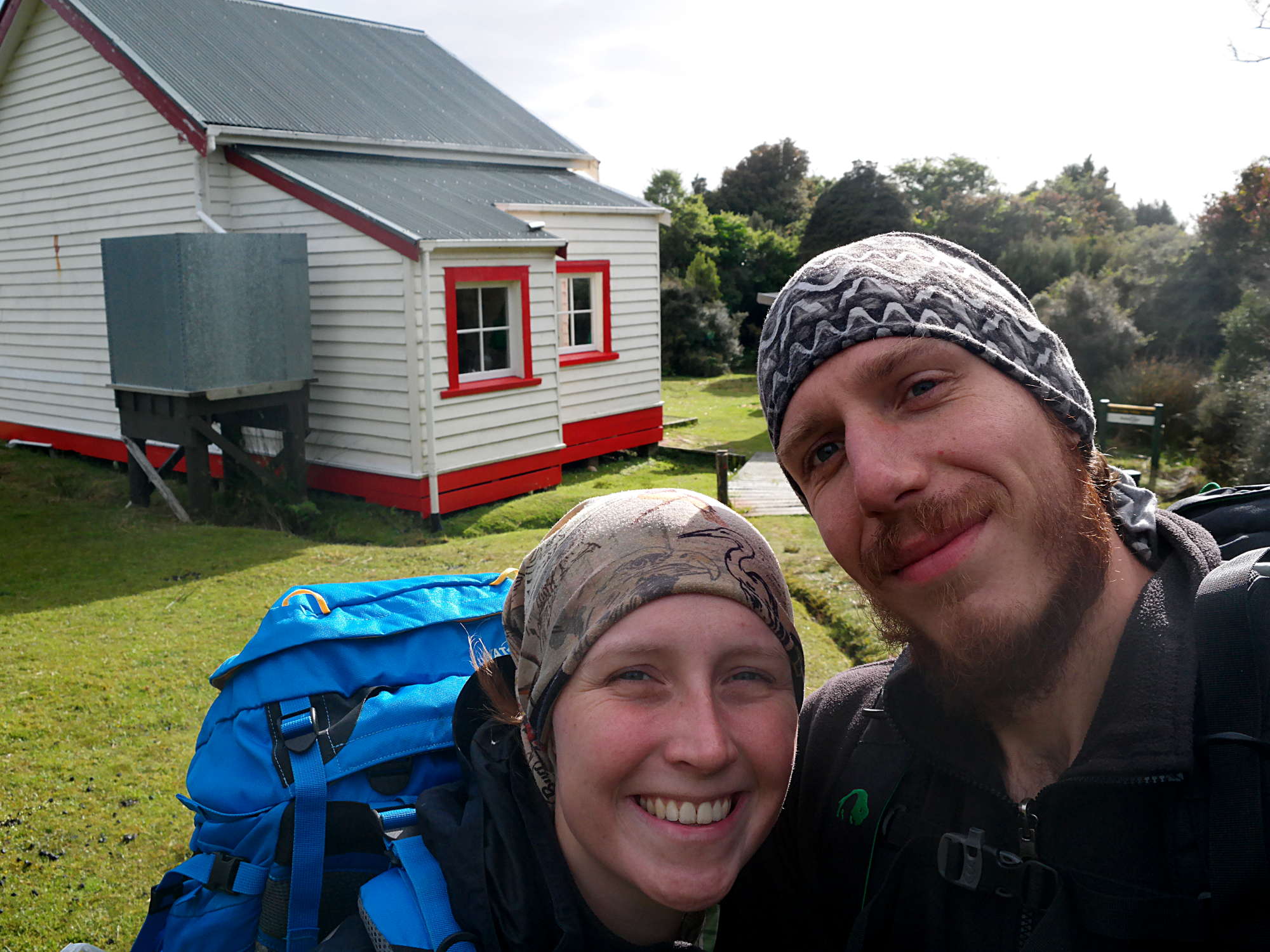 Nachdem der Teil des offiziellen „Hump Ridge Track“ vorbei war (der geht nach oben auf eine Anhöhe weiter) wurde es mit dem Matsch leider noch schlimmer. Ich habe irgendwann aufgegeben und bin einfach durch alles durchmaschiert. ^^ Nach 16 km Schlammschlacht waren wir sehr froh als endlich die Hütte in Sicht kam. 🙂