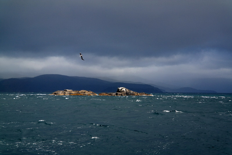 Der nächste Tag startete nass, stürmisch und früh… Perfekte Bedingungen für eine kleine Fährfahrt rüber nach Bluff – Nicht! In der Ankunftshalle hörten wir den Büromitarbeiter am Telefon reden… „Ah, wir sind nicht sicher ob sie fahren können. Sie werden es versuchen. Zur Not müssen sie umdrehen… wir hoffen sie schaffen es“. Yeah, das macht Hoffnung! Aber wenige Minuten später kam unsere Fähre an und wir gingen an Board. Kein zurück mehr… Es ging nur Auf- und Ab, die Wellen klatschten nur so auf und über das Boot… Die ersten Menschen fühlten sich schlecht… und der Geruch wurde nicht besser. Auch Jonas wurde immer blasser… Und ich hatte Spaß! Herrlich! Dank unserem super Skipper haben wir es tatsächlich heil nach Bluff geschafft und Jonas hat es geschafft sein Frühstück zu behalten. 😉 Es war ein abenteuerlicher Abschluss unserer Zeit auf Stewart Island bei einem Sturm mit der Fähre zurück zu fahren… ^^