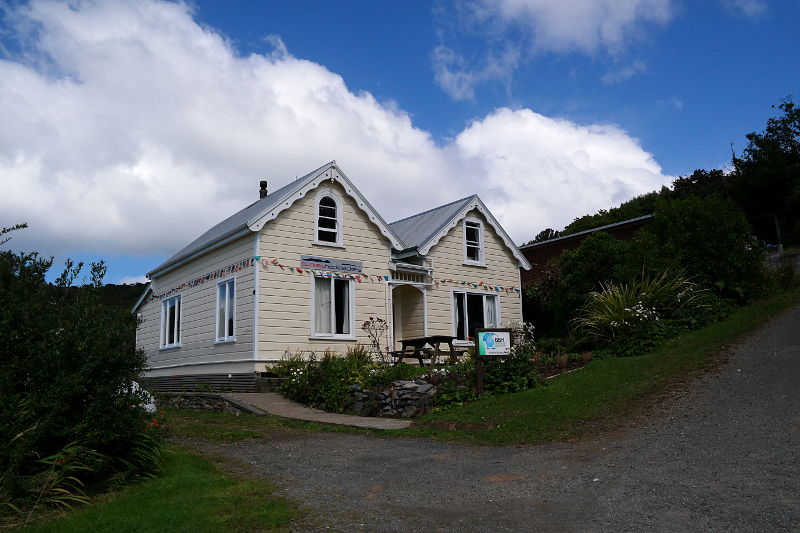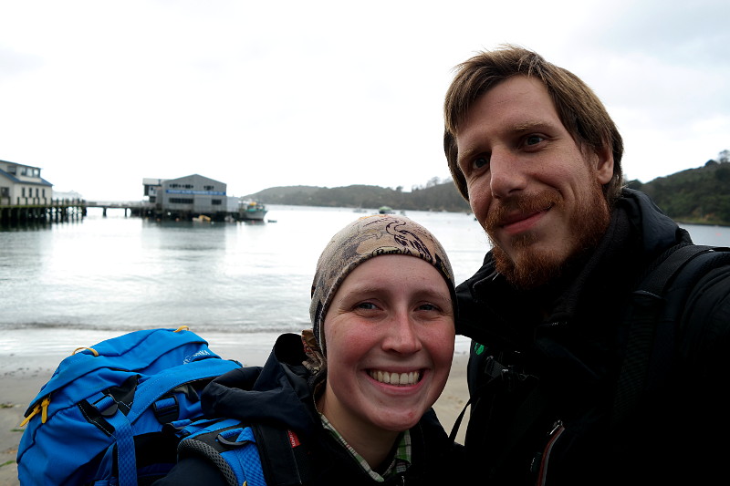 Bei unserer Ankunft empfängt uns Stewart Island mit dem typischen Inselwetter – grau, etwas neblig und es nieselte leicht. Yeah! Auf ins Abenteuer. Nachdem ich unseren kleinen Rucksack beim Hostel abgegeben hatte (frische Klamotten und Essen für zwei zusätzliche Tage wollten wir nicht unbedingt auf unsere dreitägige Wanderung mitnehmen) und Jonas im DOC-Office unsere Huttickets abgeholt hatte ging es los. 🙂