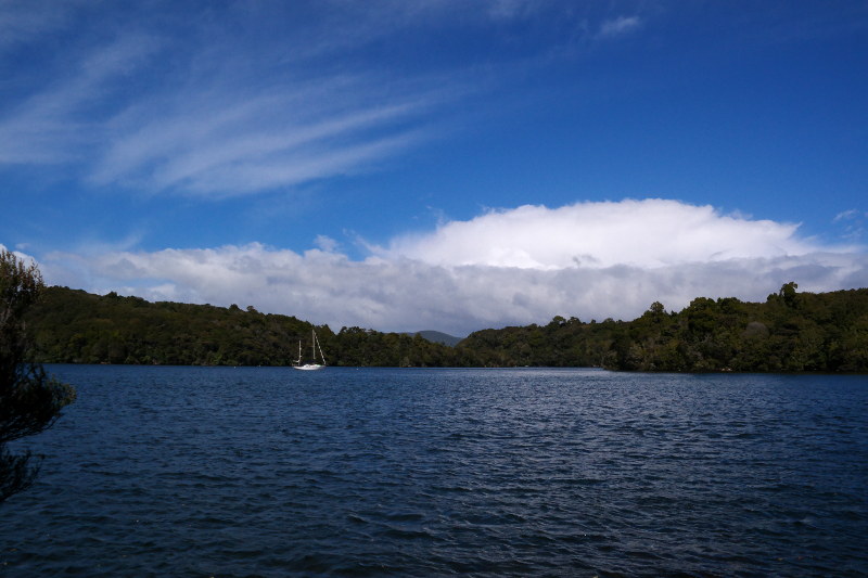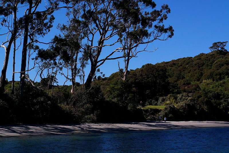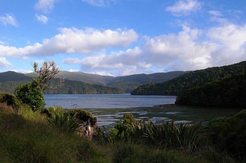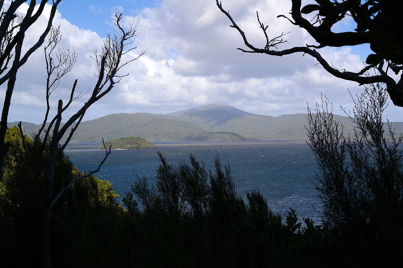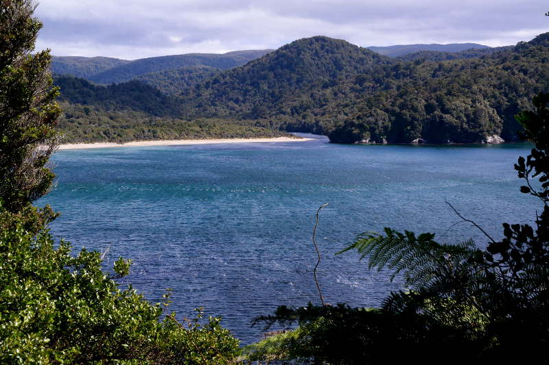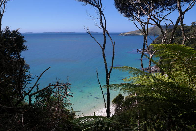Nach der ersten Mittagspause beim offiziellen Trackstart ging es los auf unseren Great Walk. Der Weg der ersten Etappe zu „Port William“ ist super ausgebaut und führt zuerst durch schönen Busch. Allerdings sehr nah zum Strand, daher können wir immer wieder das Meer zwischen den Bäumen sehen.