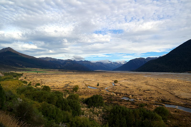 Zuerst sind wir einen Stück des „Arthurs Pass“ gefahren. Das ist eine sehr schöne Passstraße zwischen den ersten Bergen der Südalpen hindurch. Es geht bei dieser Strecke nicht um ein bestimmtes Ziel, sondern um den Weg. – Eine der wenigen Zugstrecken (für Passagiere) führt von Christchurch nach Greymouth und damit auch über Arthurs Pass. Eine der schönsten Zugstrecken der Welt. 😉