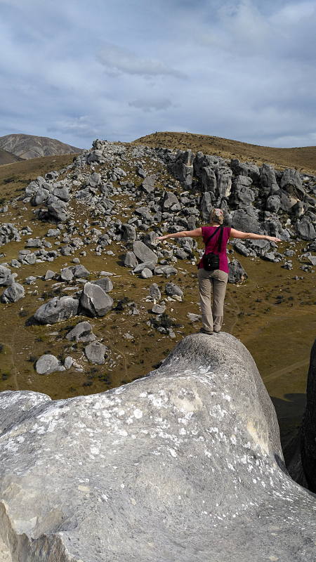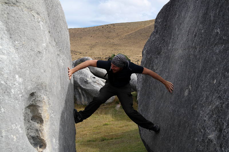 Mit dem Van hatten wir allerdings den Vorteil, dass wir immer wieder aussteigen konnten um Fotos zu machen, den Moment zu genießen oder über ein paar Felsen zu klettern. „Castle Hill“ ist ein Paradies für Kletterer und Boulder-Fans. Ein paar Hügel mit super vielen Kalksteinfelsen – über die Jahre von Wind und Regen rund geschliffen. Ein großer Spielplatz für Kinder in jedem Alter. 😉
