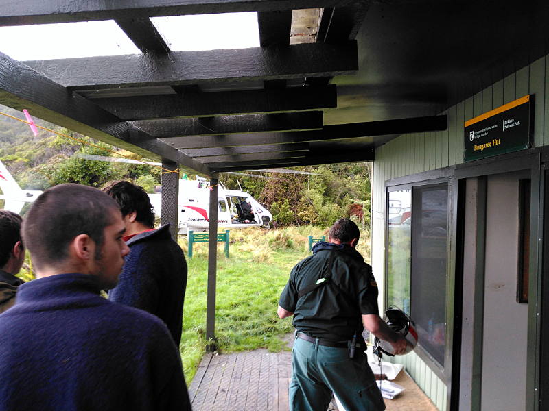 Gegen Ende unserer Zeit hat einer der Jungs eine Infektion am Bein bekommen und da es ca. sieben Stunden Fußmarsch zum nächsten bzw. einzigen Ort auf der Insel sind, hat die Notrufzentrale entschieden einen Helikopter vom Festland zu schicken. Dieser ist direkt neben der Hütte gelandet und hat Ben und seinen Vater ins Krankenhaus gebracht. Inzwischen geht es ihm wieder gut und sein Papa hat eine tolle Geschichte zu erzählen, schließlich wurde der Helikopter von einer „lebenden Kiwi-Legende“ geflogen. 😉