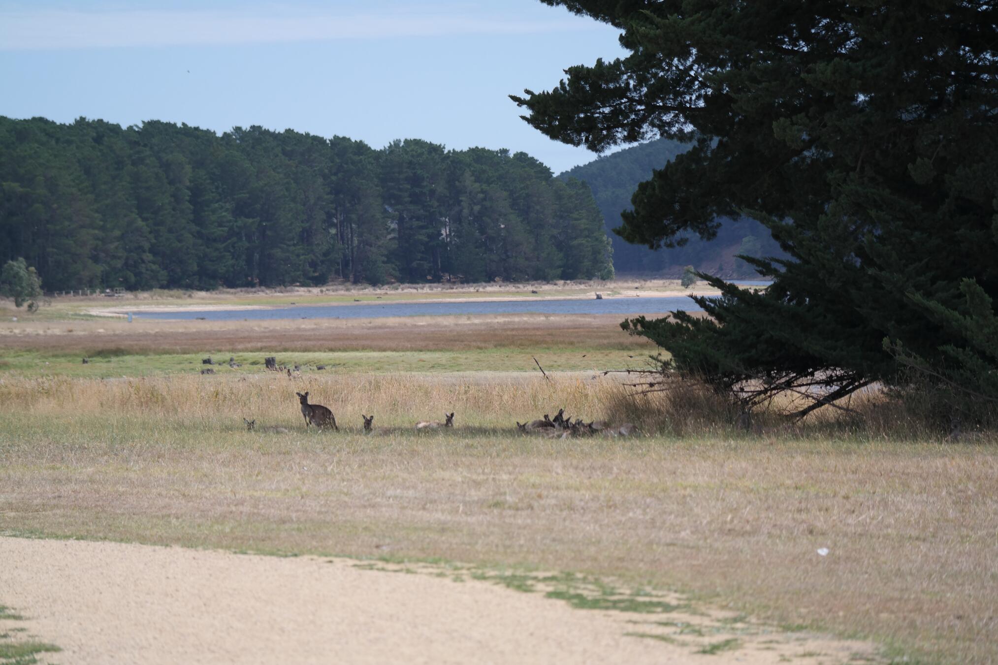 Von unserem Lunchspot aus erspähen wir endlich die ersten Kängurus! Sie liegen im Schatten eines großen Baumes und direkt daneben führt ein Trail entlang. Den wollen wir gestärkt nach dem Mittagessen angehen, aber der Weg ist wegen Corona gesperrt … Warum?!
